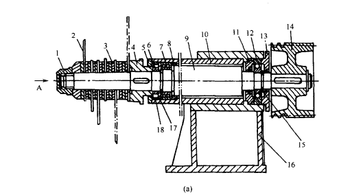1、螺母;2、斬肉刀;3、墊片;4、六角油封;5軸承壓蓋;6、鎖緊螺母;7、雙列短滾子軸承;8、套子;9、刀軸;10、軸套;11、軸承蓋;12單列向心球軸承;13、軸承蓋;14、三角帶輪;15、檔環(huán);16、刀軸座;17、擋圈;18、隔套。